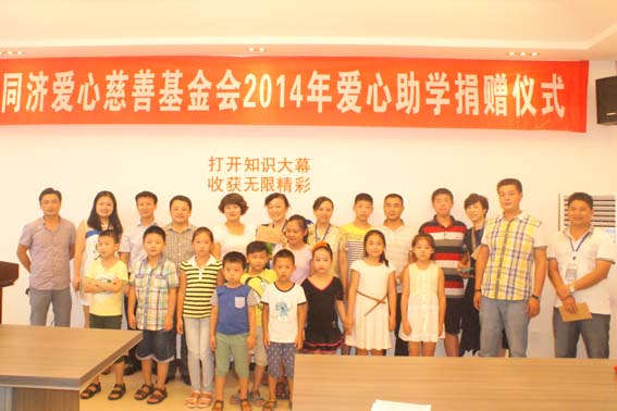2014年8月23日下午,同济爱心慈善基金会2014年度第二次爱心助学捐赠仪式在公司七楼培训室隆重举行,公司总经理暨同济爱心慈善基金会副理事长、技术中心总监以及行政中心总监出席了此次捐赠仪式。