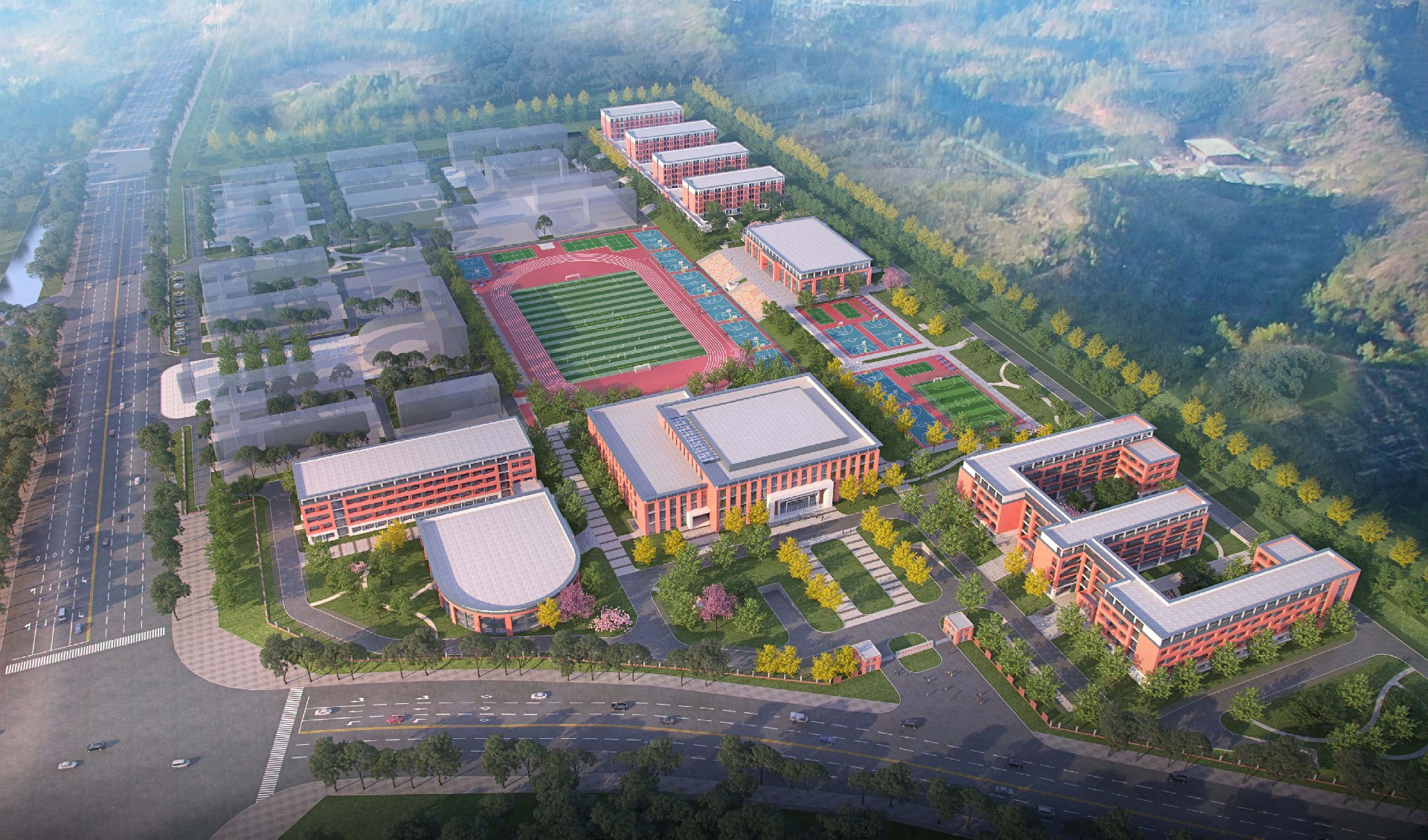 本项目总建筑面积为87510.11 平方米,充分考虑校园教学和师生生活特点,注重功能需求,强调人、环境、建筑的共存和融合,以提高教学质量、生活质量、环境质量为目标,营造一个布局合理、尺度宜人的空间,做到功能齐全、设施完善,经济实用的需要,打造一座高标准、高品位、高质量的现代化校园。