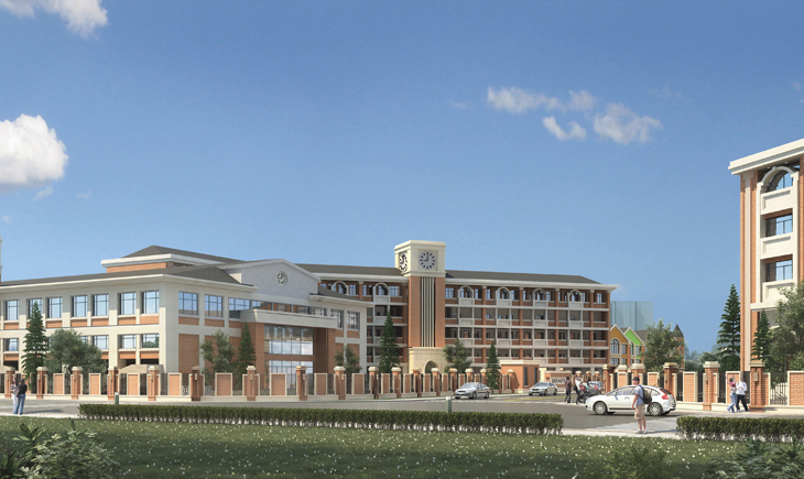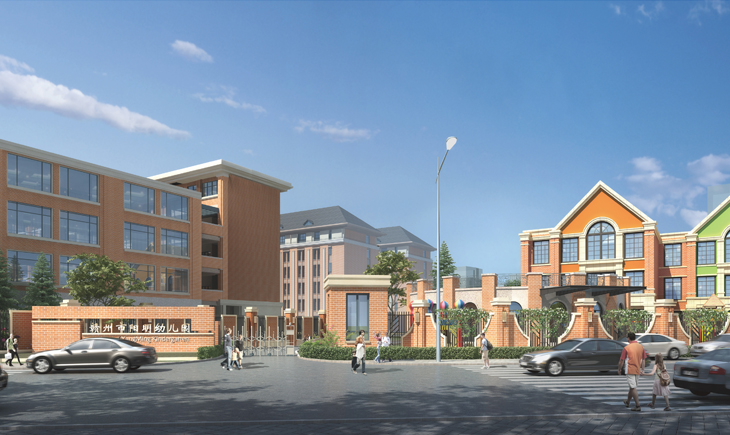 设计内容包括:幼儿园、初中部、高中部、文体中心、立体地下车库等。