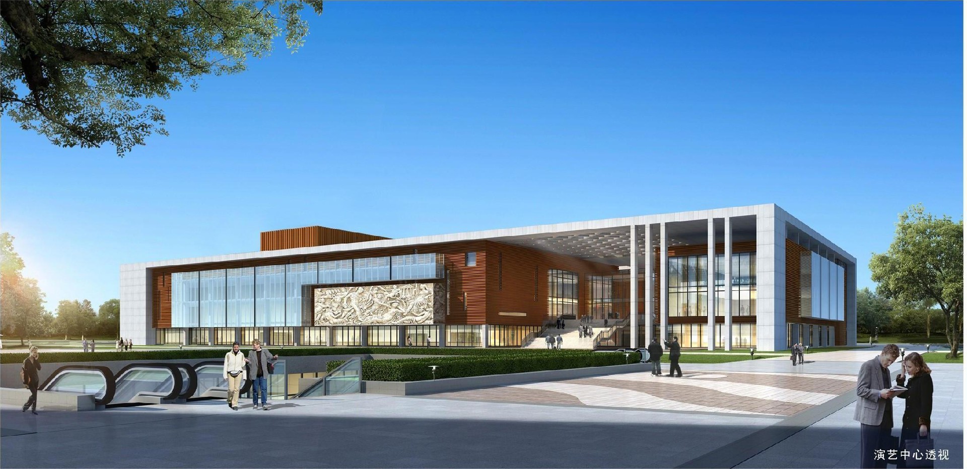 项目充分尊重总体规划条件,建筑单体造型设计服务于城市总体环境,提升区域环境质量和文化艺术氛围。并在演艺中心群将剧场、会议中心结合在一幢建筑中,彼此联系,通而不扰,满足化多功能的需求。